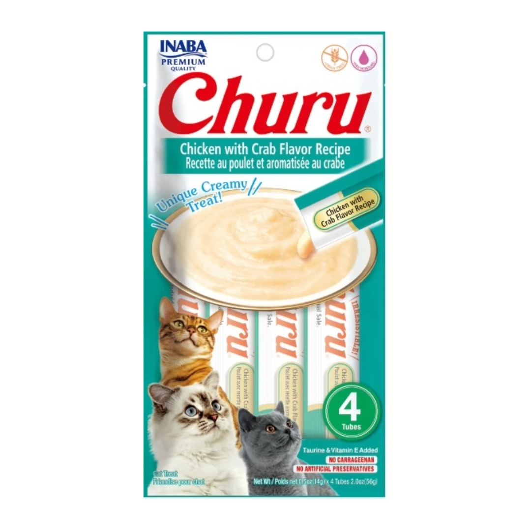 Churu Inaba Snack Cremoso para Gato – Pollo con Cangrejo (4 tubos / 56 g)