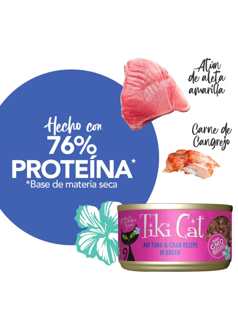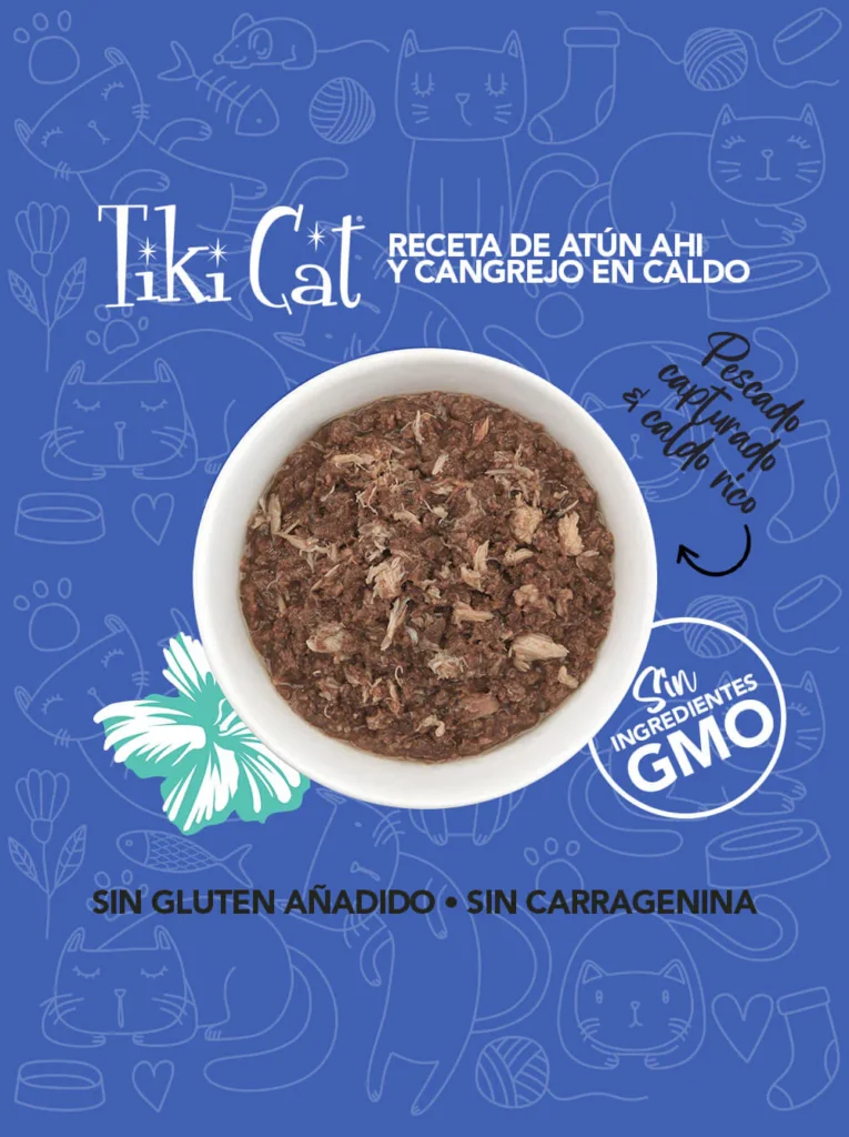 Consiente a tu gato con un verdadero festín del mar. Esta receta combina atún aleta amarilla desmenuzado con carne real de cangrejo, todo servido en un caldo ligero y aromático que realza cada bocado. El resultado es un plato irresistible incluso para los felinos más exigentes.