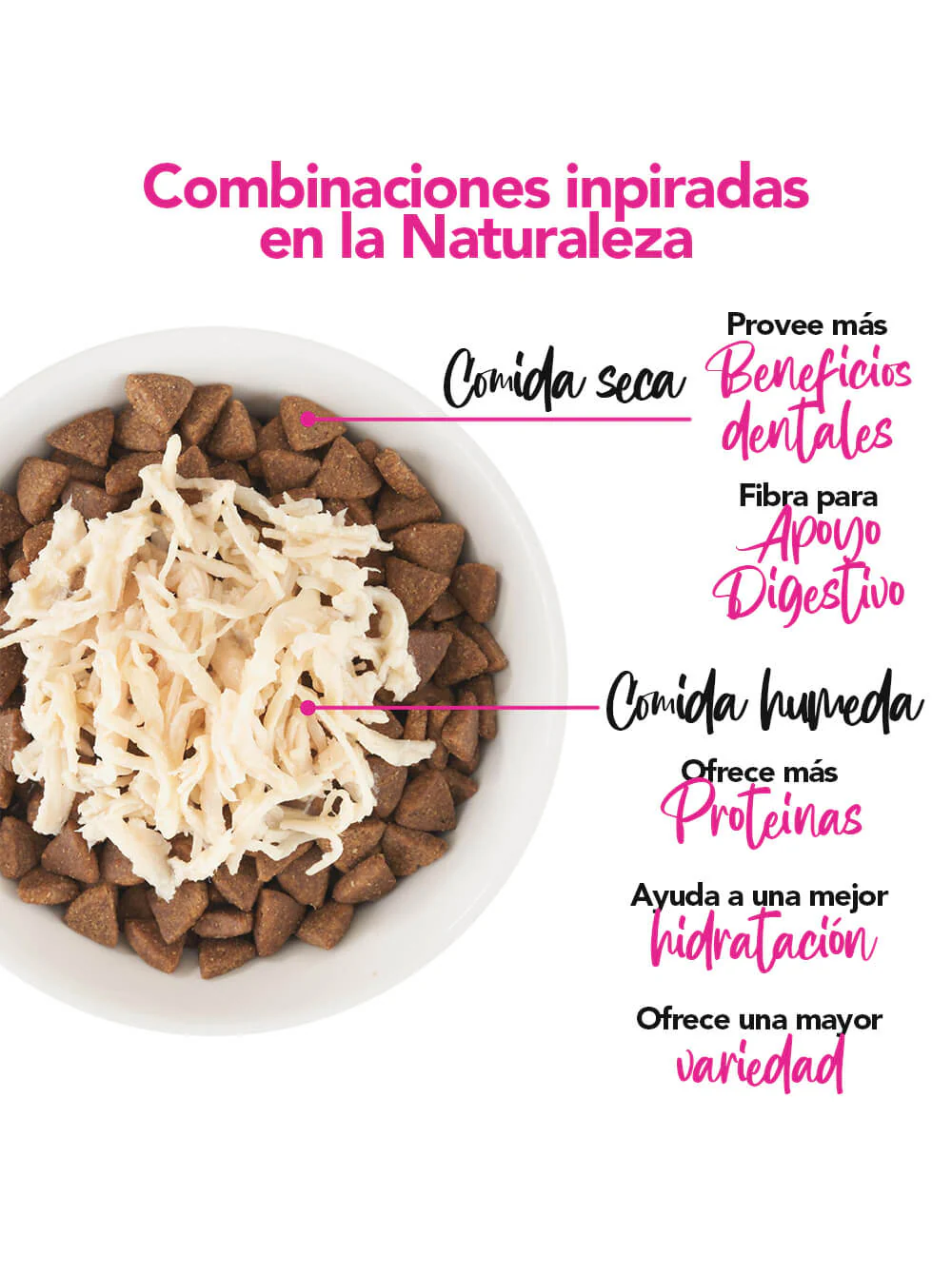 Perfecto como alimento completo o como complemento para dar variedad y sabor extra a su dieta.