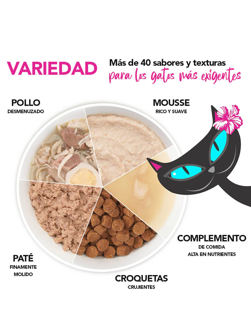La textura jugosa y su base de caldo favorecen la hidratación diaria, ideal para gatos que no suelen beber suficiente agua. Además, está elaborada sin cereales, sin subproductos y sin ingredientes artificiales, garantizando una nutrición limpia y de alta calidad.