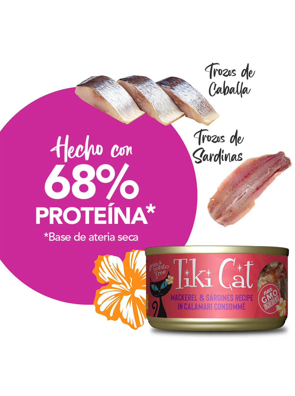 Libre de cereales, subproductos y conservantes artificiales, Tiki Cat® Grill Mackerel & Sardines ofrece una nutrición pura y limpia, ideal para gatos que disfrutan de alimentos frescos, ligeros y llenos de sabor real.